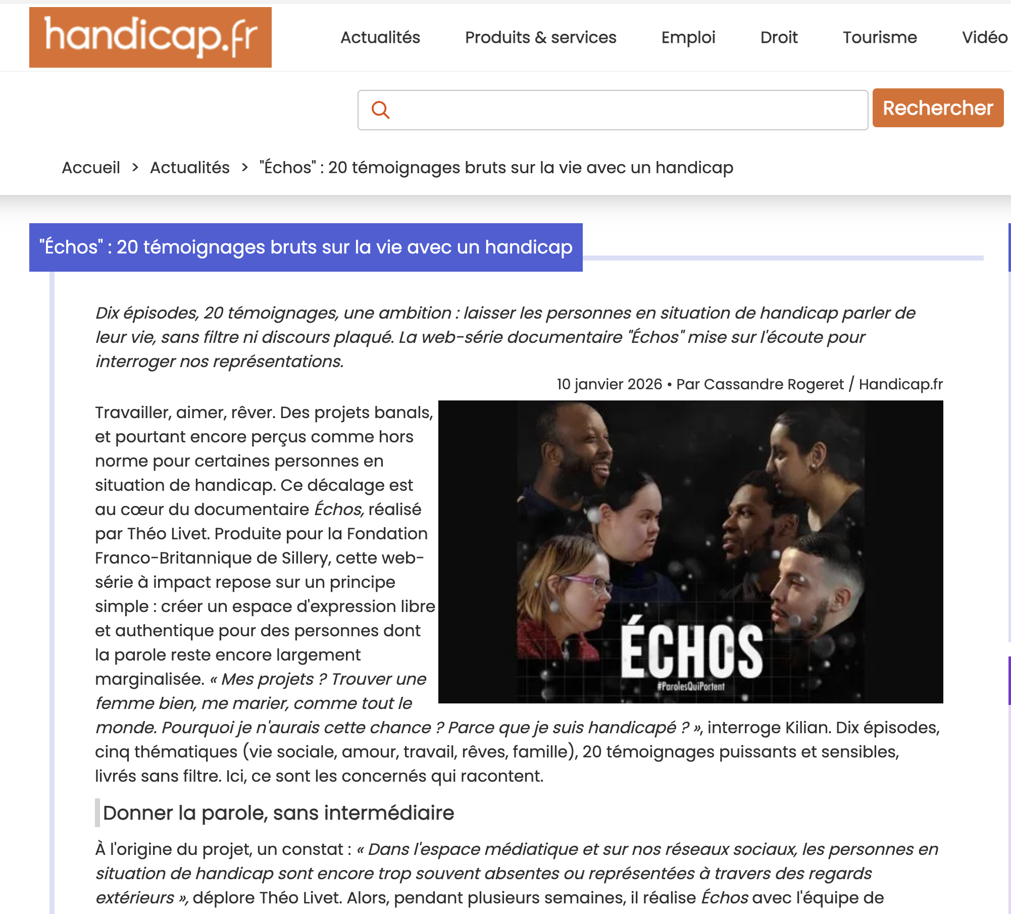 Le 2 décembre dernier, un peu en avance de la journée internationale du handicap, la Fondation a organisé son avant-première du documentaire "Échos"…